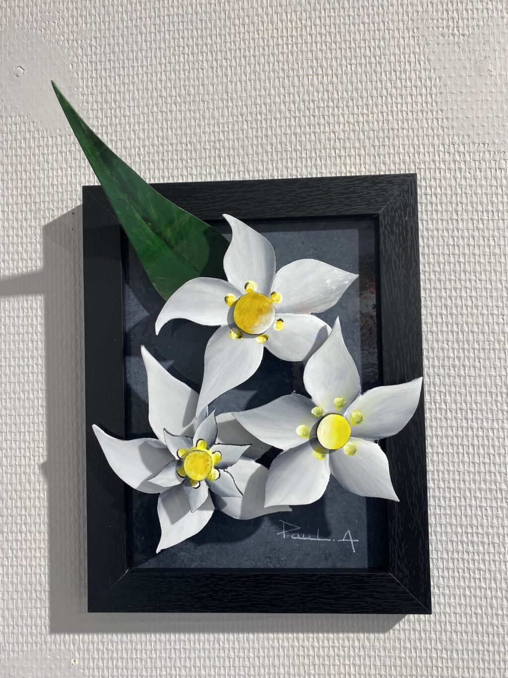 Edelweiss Petit format, grand plaisir! Composition en relief de l’Edelweiss avec 3 fleurs blanches qui s’épanouissent délicatement hors du cadre. Un jeu d’ombres et de matières qui célèbre la pureté alpine. Les « Mini Enjoy » sont des pièces uniques, pleines d’énergie et de couleurs… et à prix tout doux ! 2 possibilités d’installation (à suspendre ou…