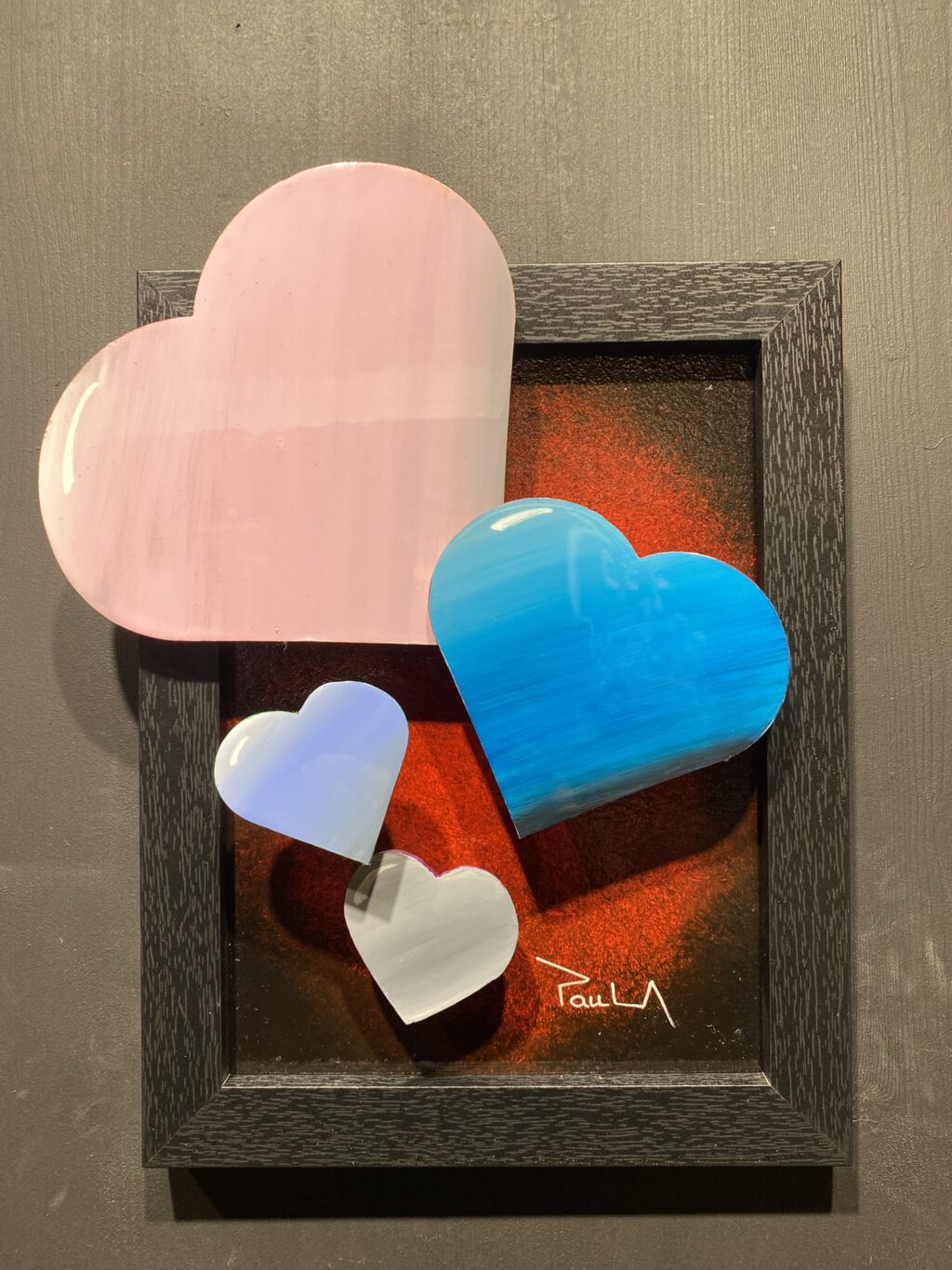 Love Douces pensées Le rose, le bleu et le blanc se répondent dans un jeu d’équilibre et de relief comme autant de nuances de l’amour: tendre, profond, lumineux. Au centre, la lumière rouge chaude vient révéler les formes et créer une atmosphère intime, presque vibrante. Les cœurs se rapprochent, se croisent, se superposent… comme des…