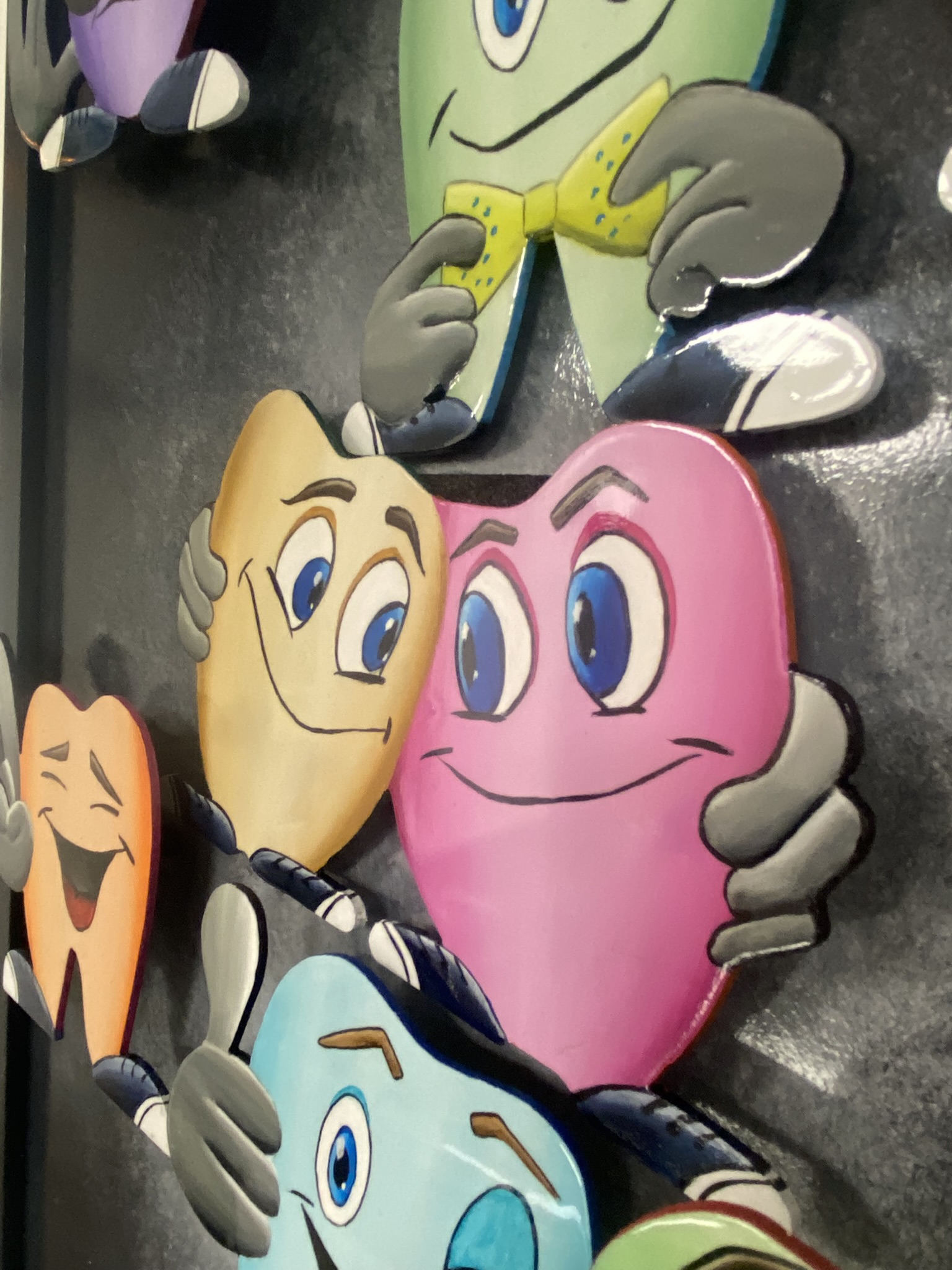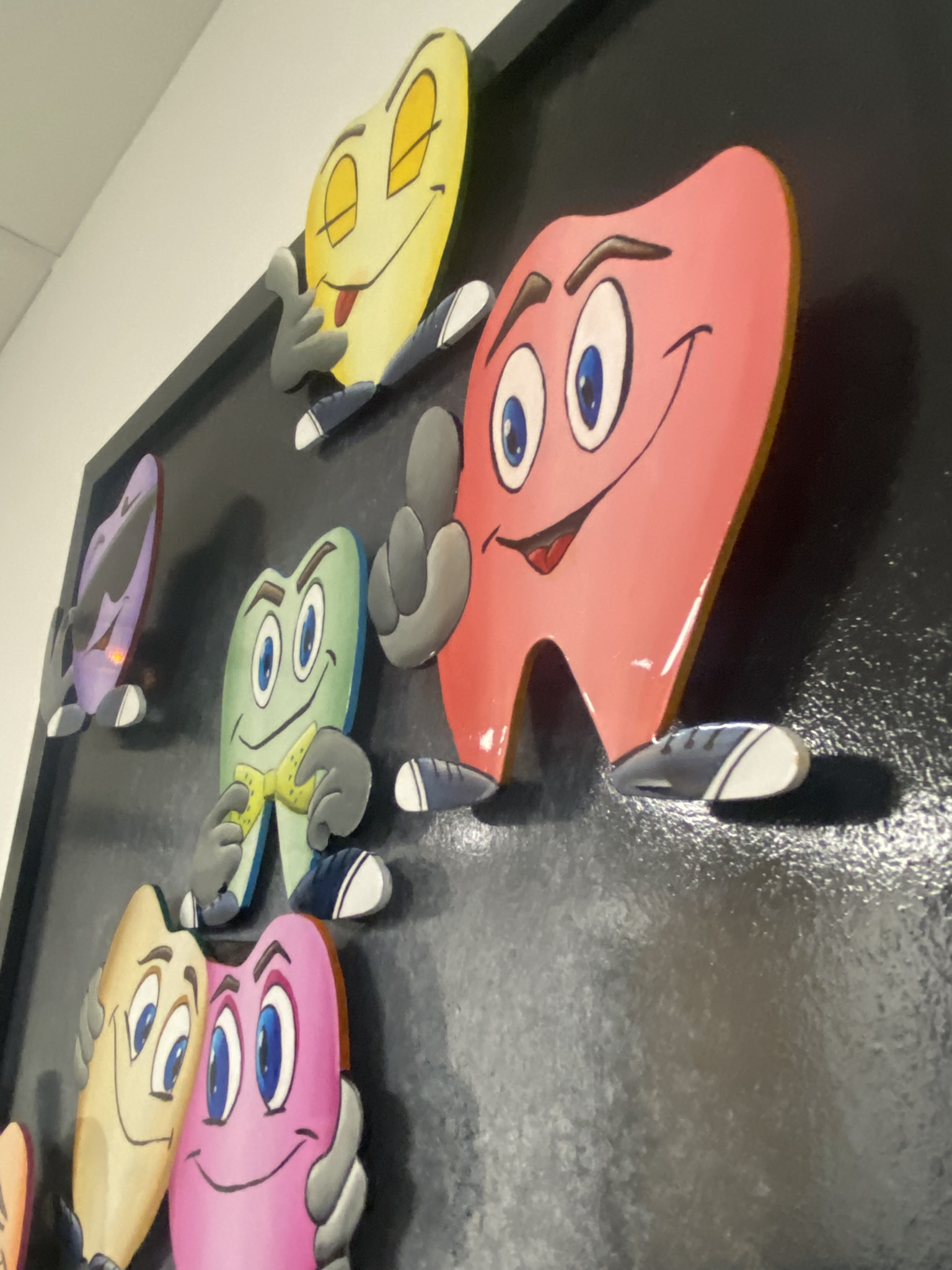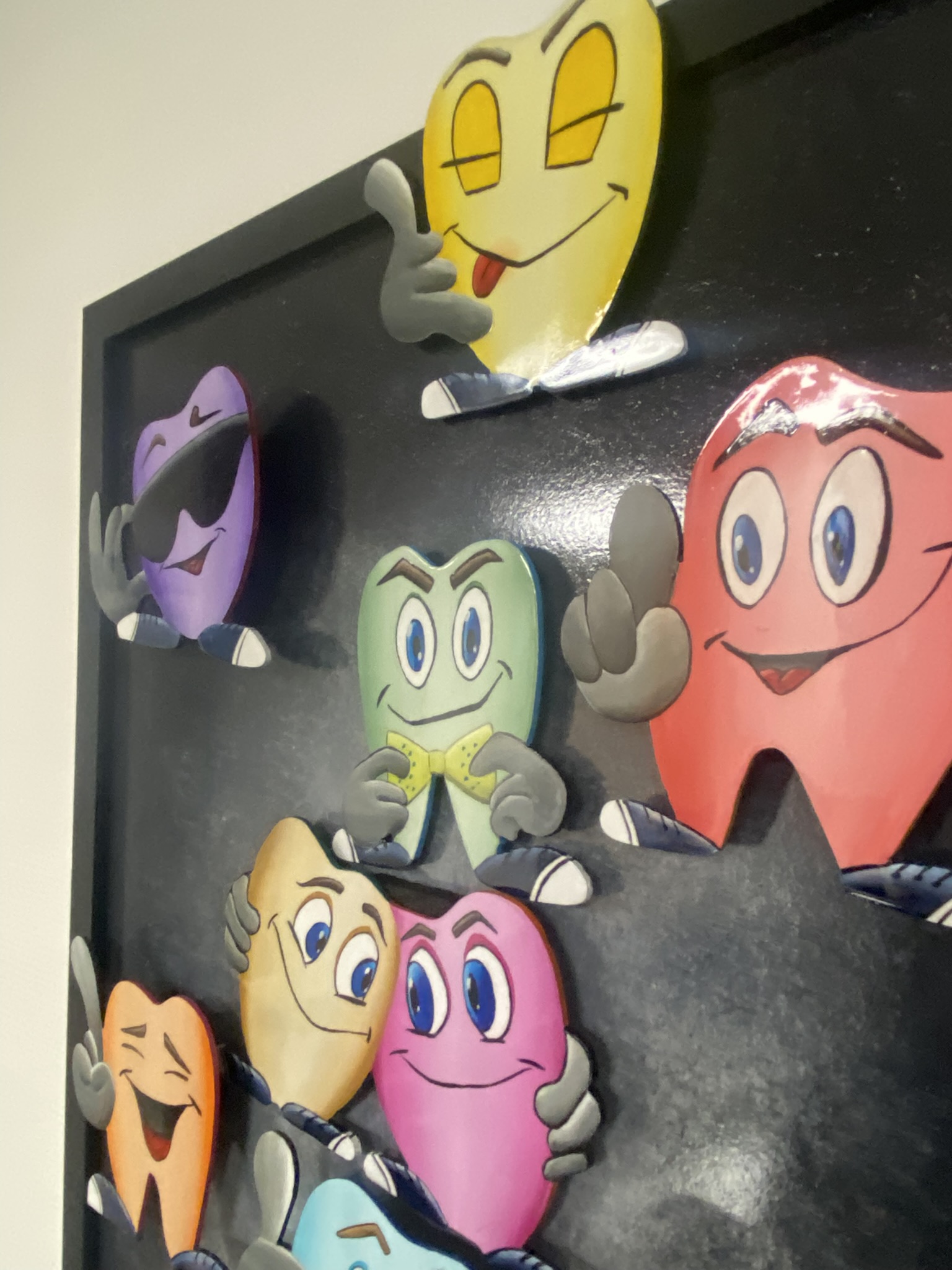 Dans cette oeuvre pleine d’esprit, voici réunit une joyeuse troupe de dents colorées, chacune dotée de sa propre personnalité. Sourires malicieux, clins d’oeil complices, attitude décalées… Chaque dent devient un personnage à part entière, presque prêt à trinquer !!