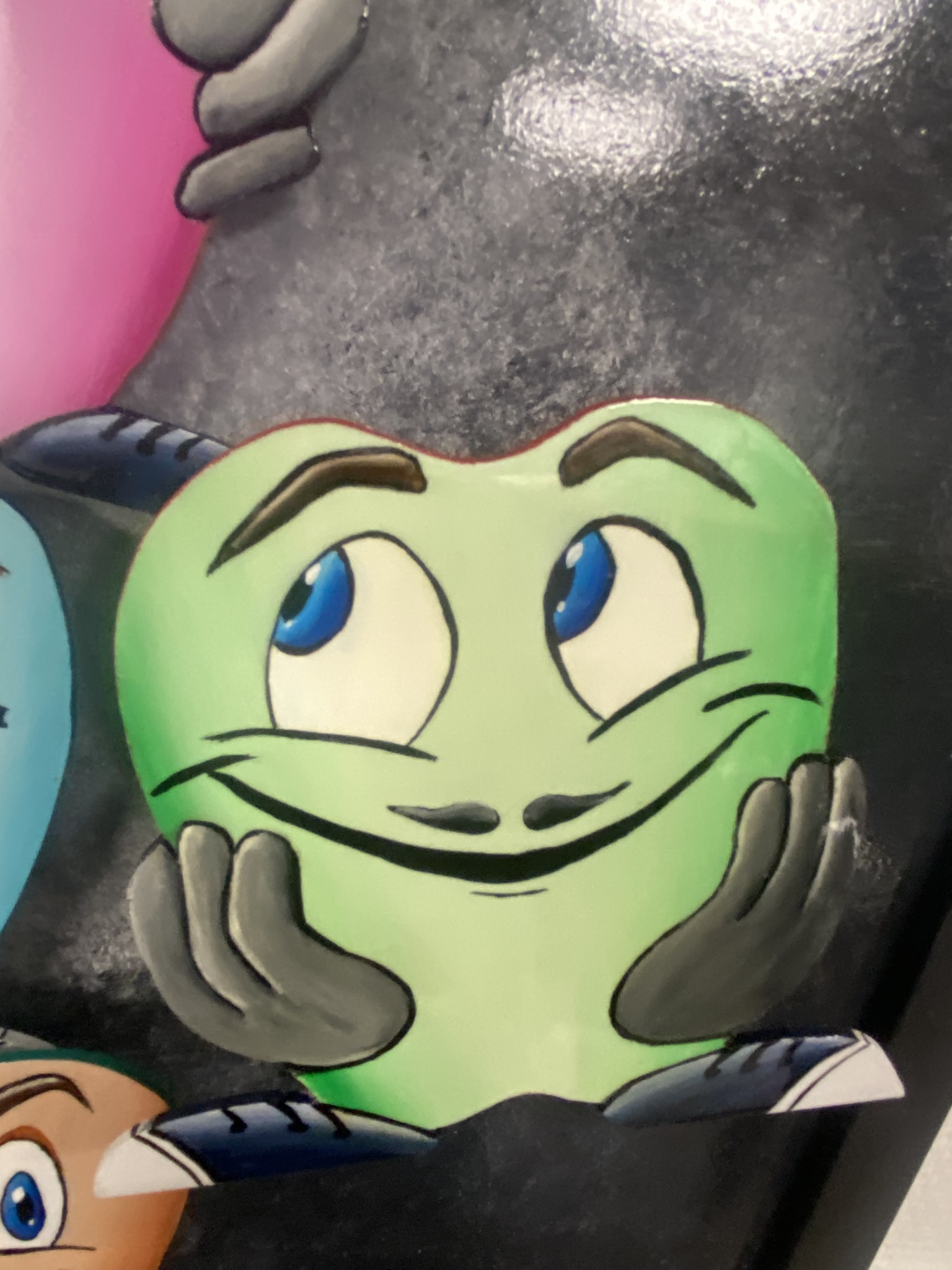 Les couleurs éclatantes et reliefs donnent vie à cette scène festive où l’ humour fuse autant que les bulles.