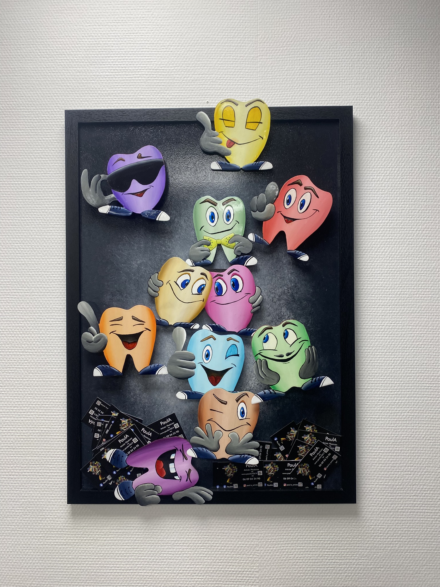 In this witty work, a cheerful troupe of colorful teeth comes together, each with its own personality. Mischievous smiles, knowing winks, quirky attitudes… Each tooth becomes a fully-fledged character, almost ready to toast!!