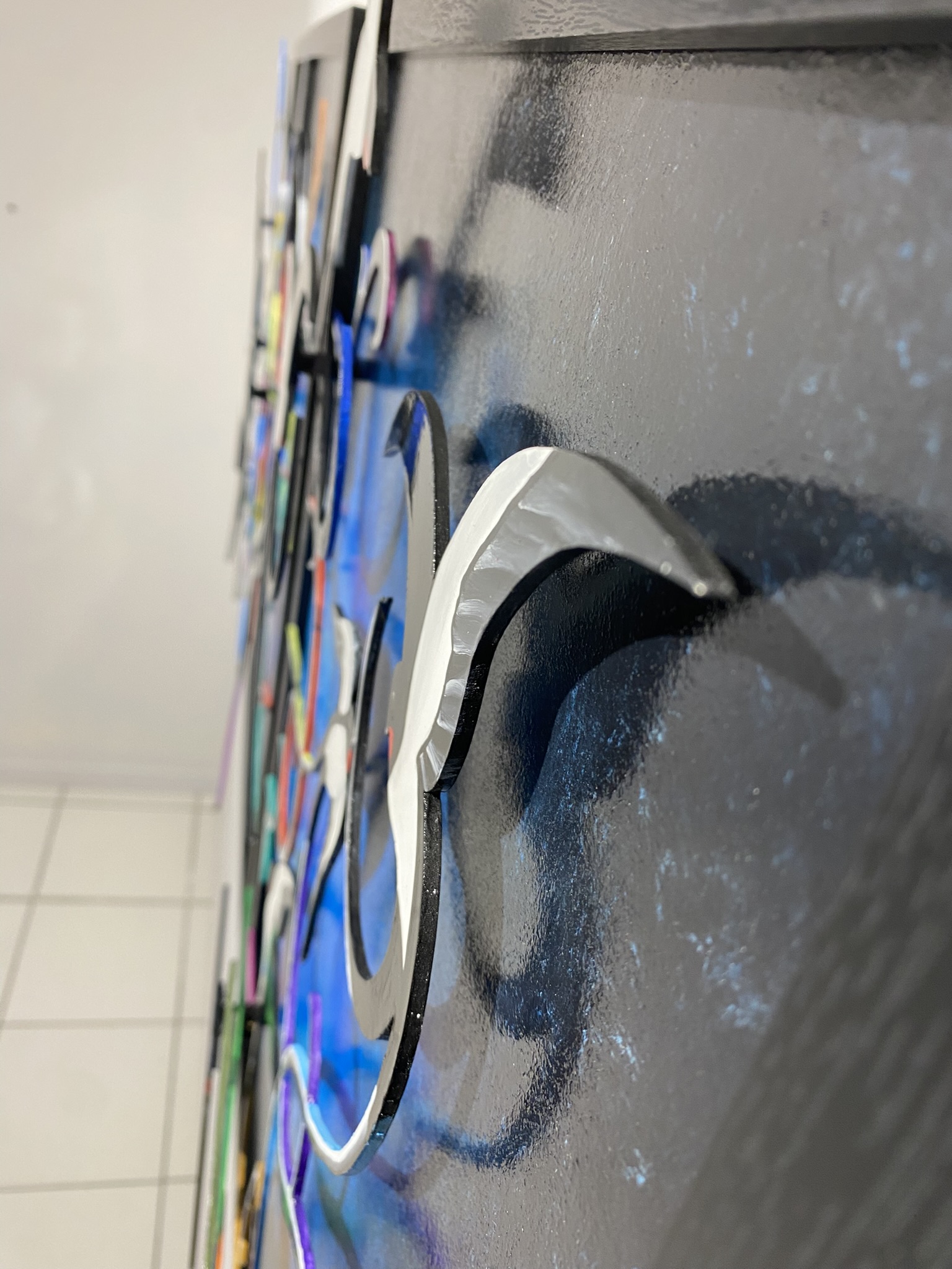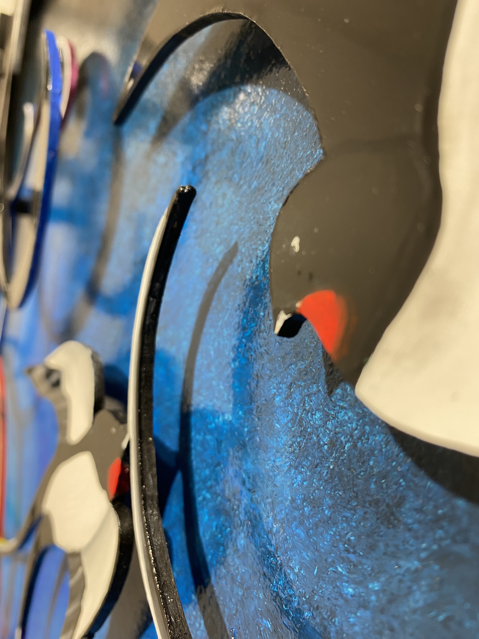 Fidèle à ma signature, la couleur va apparaitre sur les tranches, presque secrète, qui ne se révèlera qu’en s’approchant. Un détail caché, subtil, une respiration chromatique qui prolonge l’oeuvre au de son cadre.