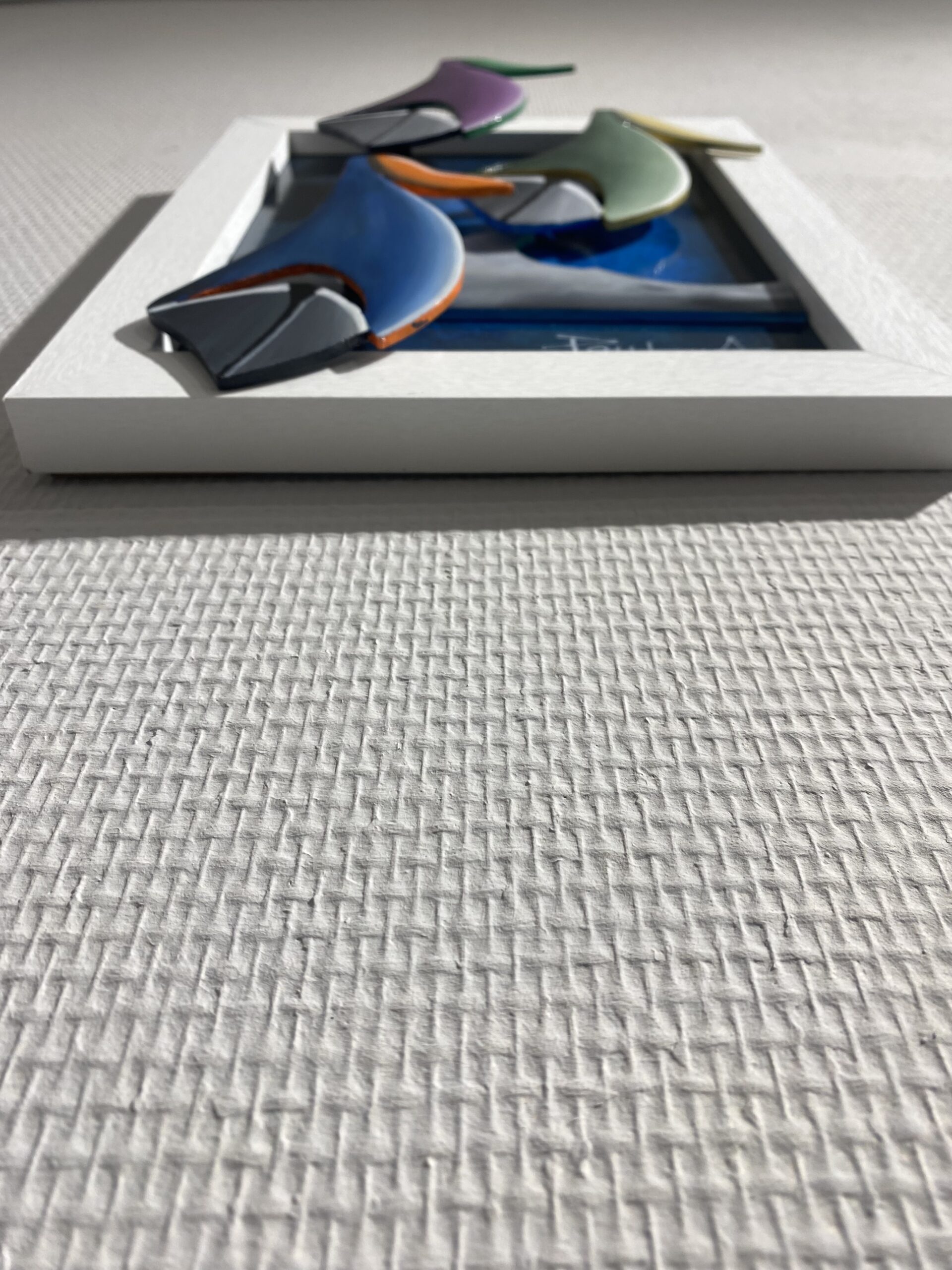 Between painting and sculpture, they seem to float, blending dreams, the horizon, and freedom.
