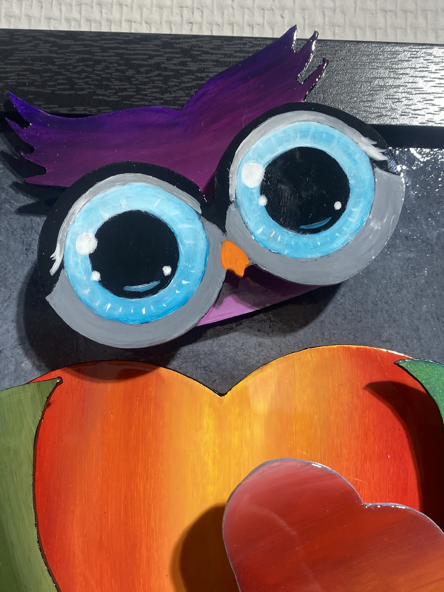 Coeur Perché représente une chouette stylisée, gardienne attentive d’un coeur vibrant posé au creux de sa poitrine.