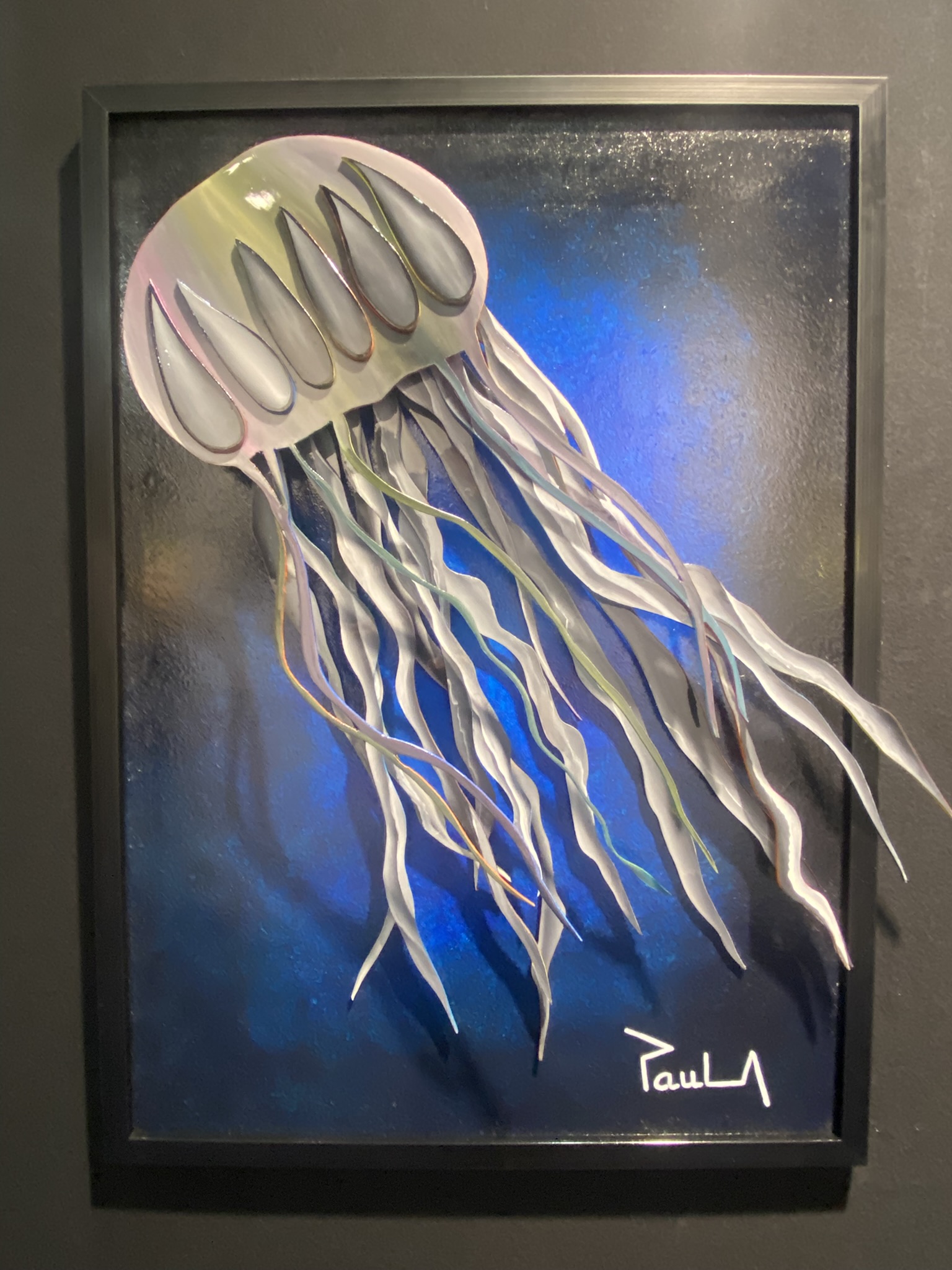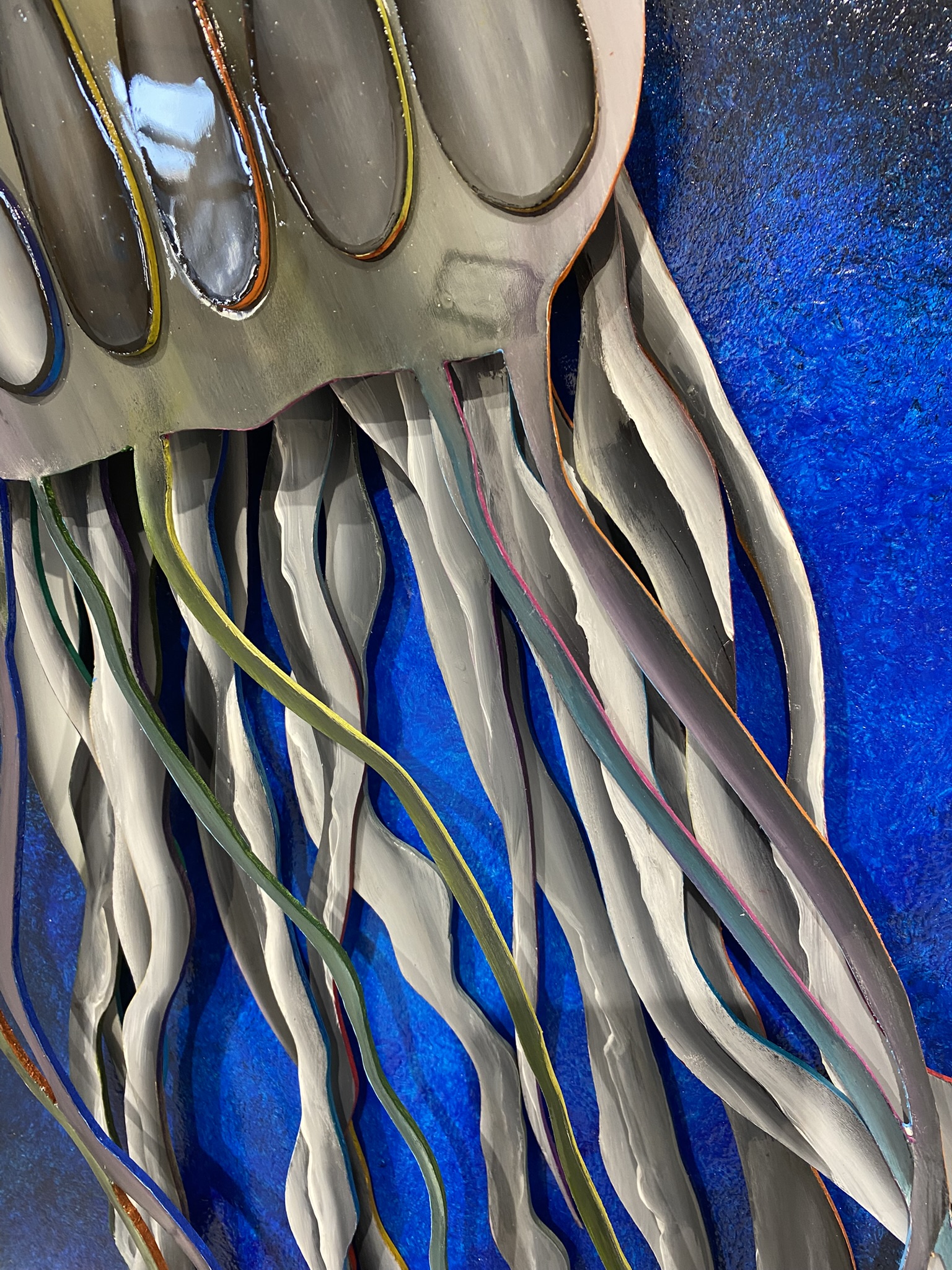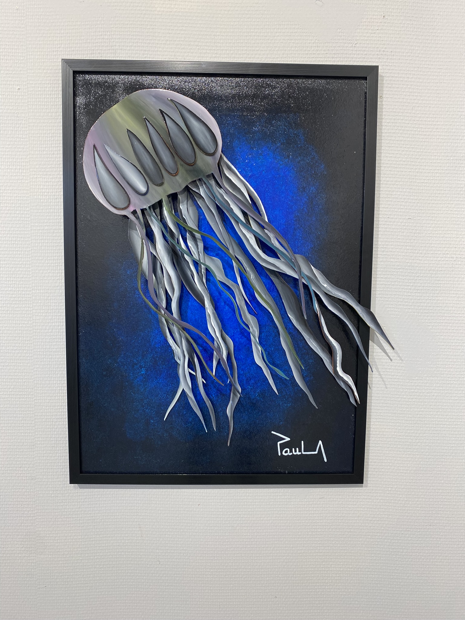 Avec « Profondeur », voici représentée la poésie silencieuse des abysses à travers cette méduse en relief, aux formes élancées et vibrantes.