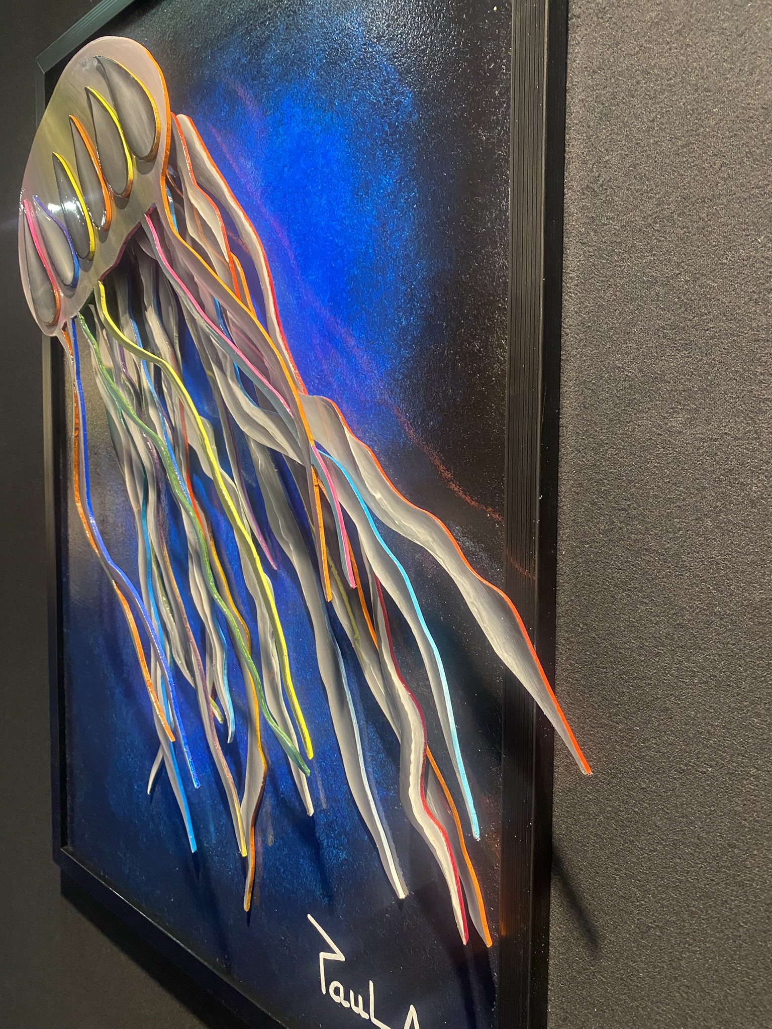 Between painting and sculpture, « Depth » captures a suspended moment: the grace of a marine being whose slow dance tells of infinity. An immersive, hypnotic work that invites you to dive into the heart of what is never seen… but only sensed.