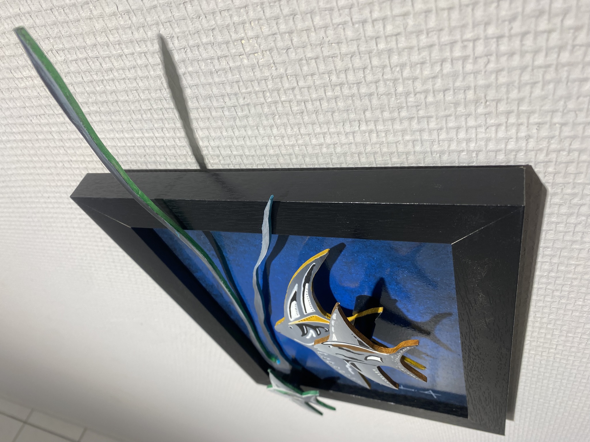 « Sprit Fish » explores the silent lightness of the marine world through these 3 stylized fish that seem to float, almost weightless, in a deep blue.